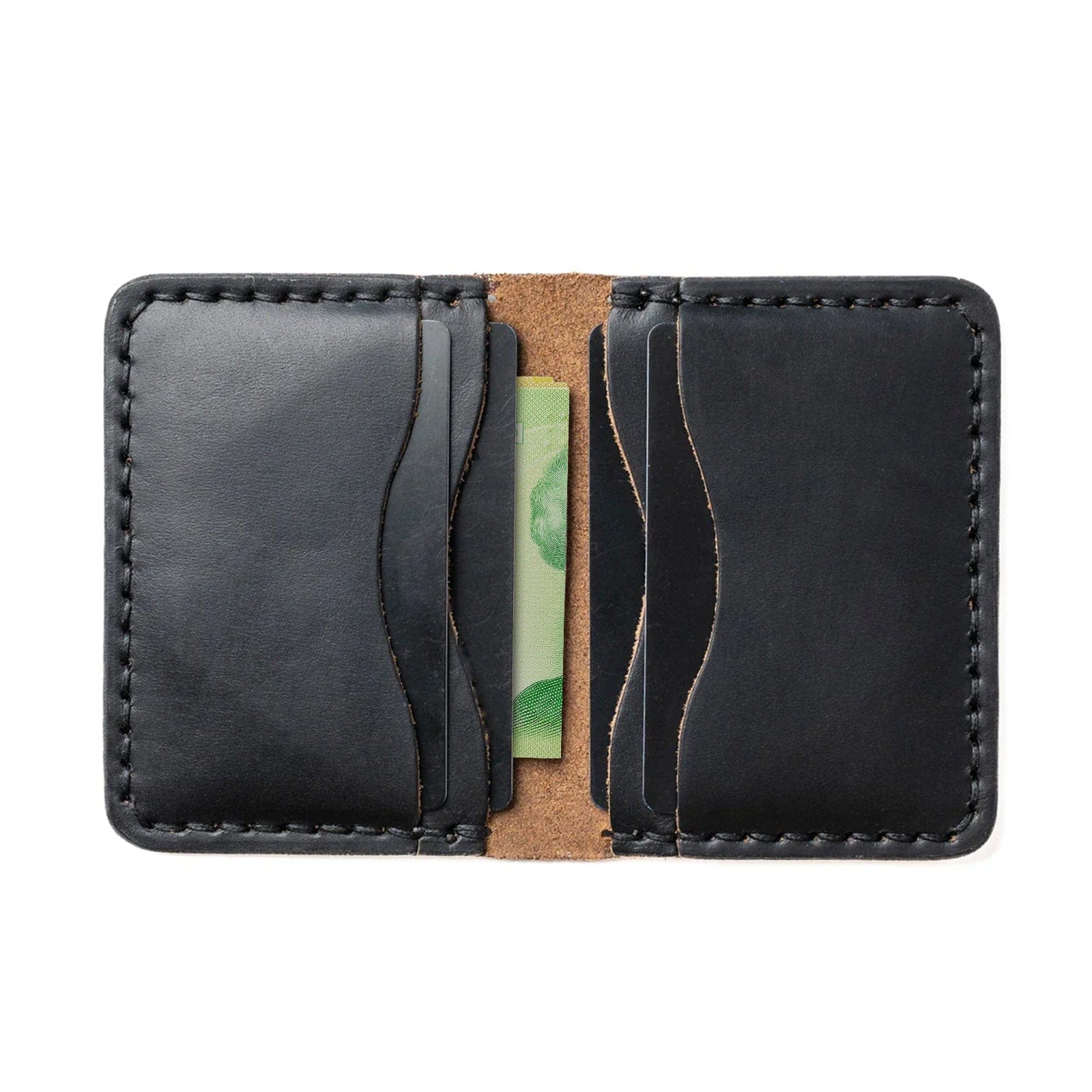 Our full-grain leather means your wallet will develop character and patina. We hand-sew this wallet with thick polyester thread so it will never unravel or come apart. The wallet features a convenient front pocket for quick access to your go-to card. Our minimalist design allows you to carry all your essential cards and cash without the bulk. We take a lot of pride in our work and back each wallet with a lifetime guarantee.